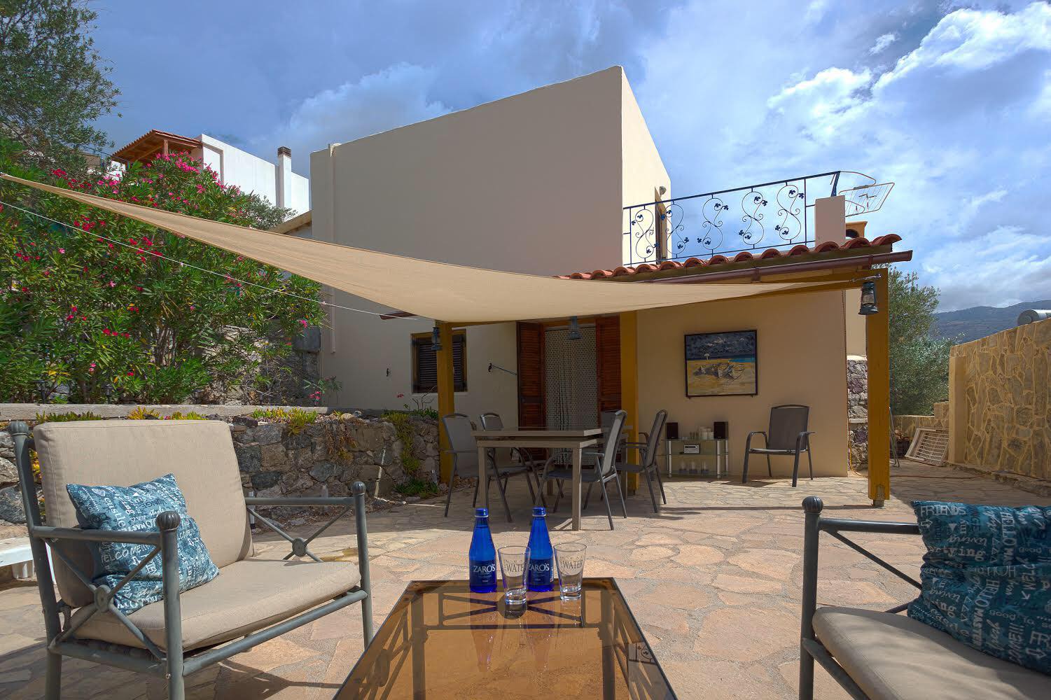Je vindt Spitimaskreta op een voormalige olijfboomgaard. Op het terrein staan in totaal 4 huizen. Door de bouw en inrichting van het terrein heeft Spitimaskreta veel privacy. Vanaf de terrassen is het uitzicht fantastisch, je bevind je tussen prachtige bergen en je hebt een geweldig uitzicht op de Libische zee.